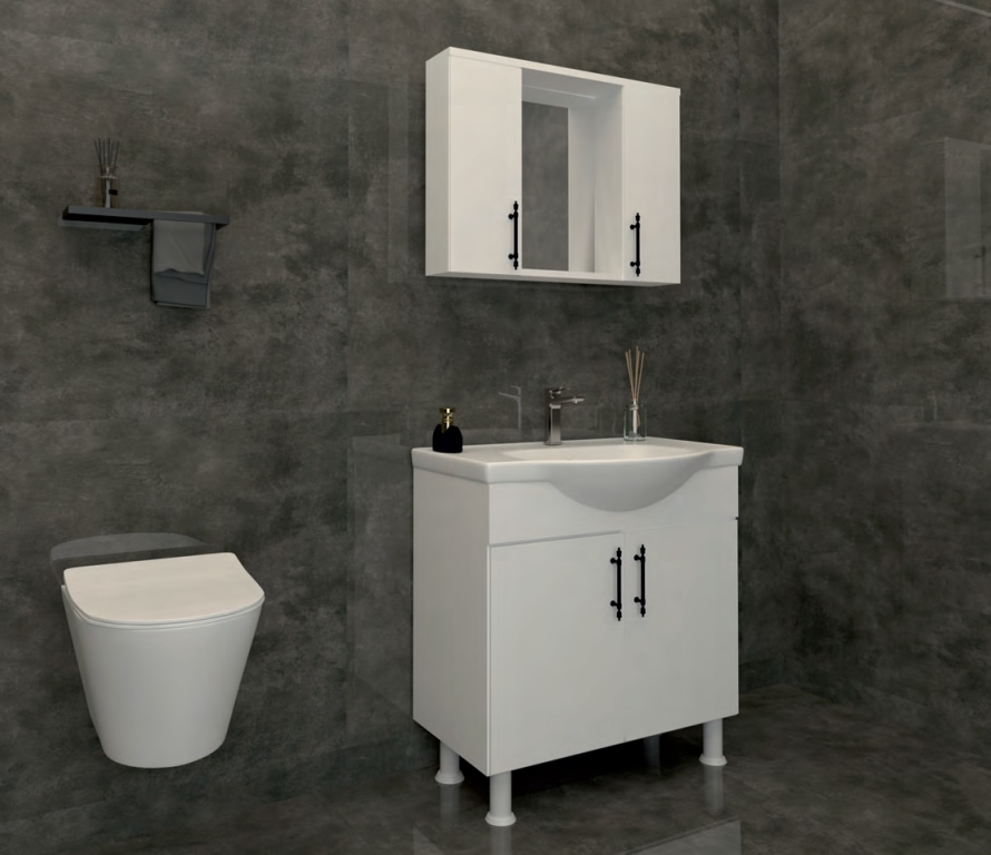 Banyo dolabı, membran kapaklı, Hilton lavabo, etajerli lavabo, Hilton banyo,