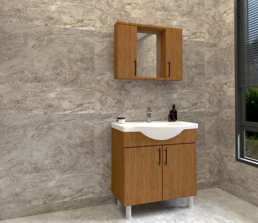 Banyo dolabı, mdf, kapaklı, Hilton lavabo, etajerli lavabo, Hilton banyo,